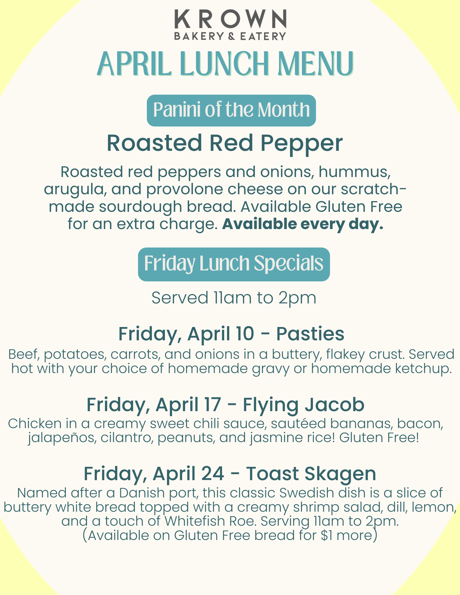 KROWN BAKERY & EATERY IS A FAMILY OWNED AND RUN BAKERY OFFERING SPECIALTY SCANDINAVIAN & EUROPEAN BREADS, PASTRIES, COOKIES, AND DESSERTS, ALONG WITH A DAILY MENU OF DELICIOUS LUNCH OPTIONS, MADE RIGHT HERE IN ANOKA, MINNESOTA.